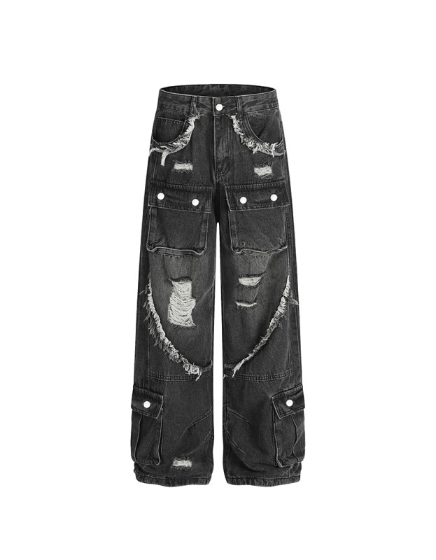 Streetwear Men's Solid Color Cotton Workwear Jeans